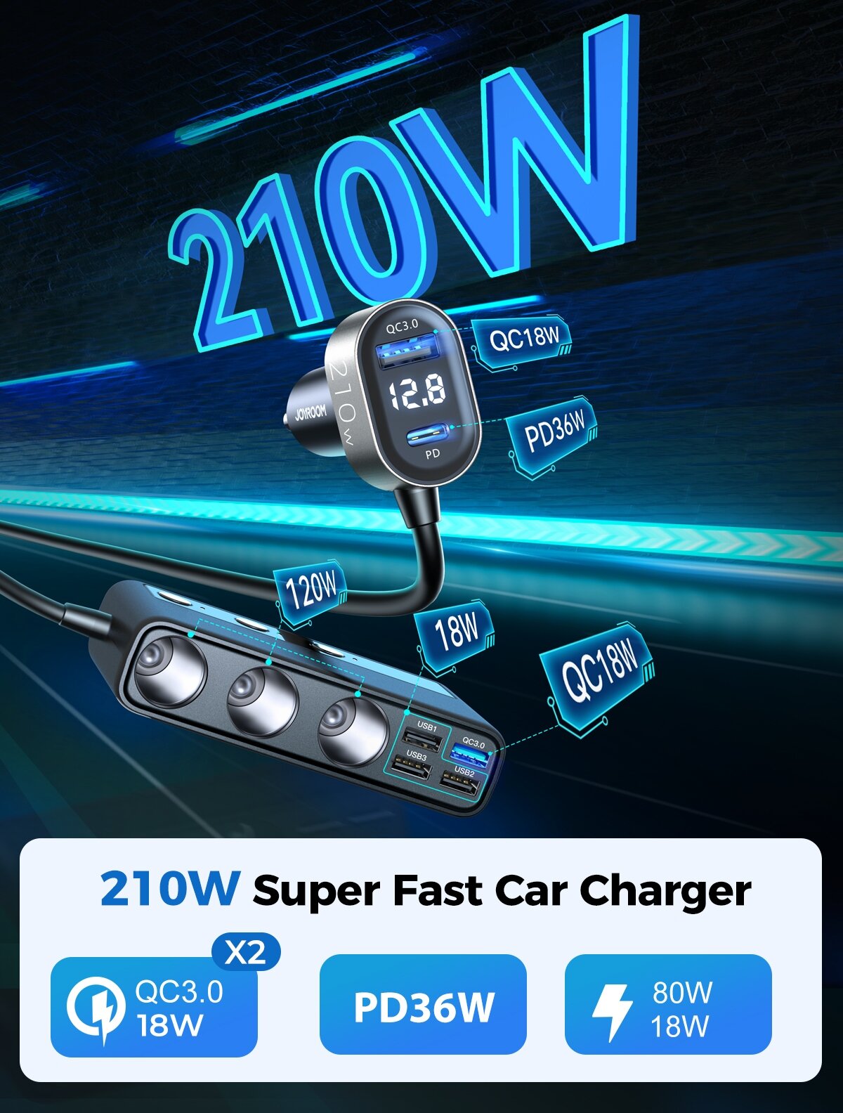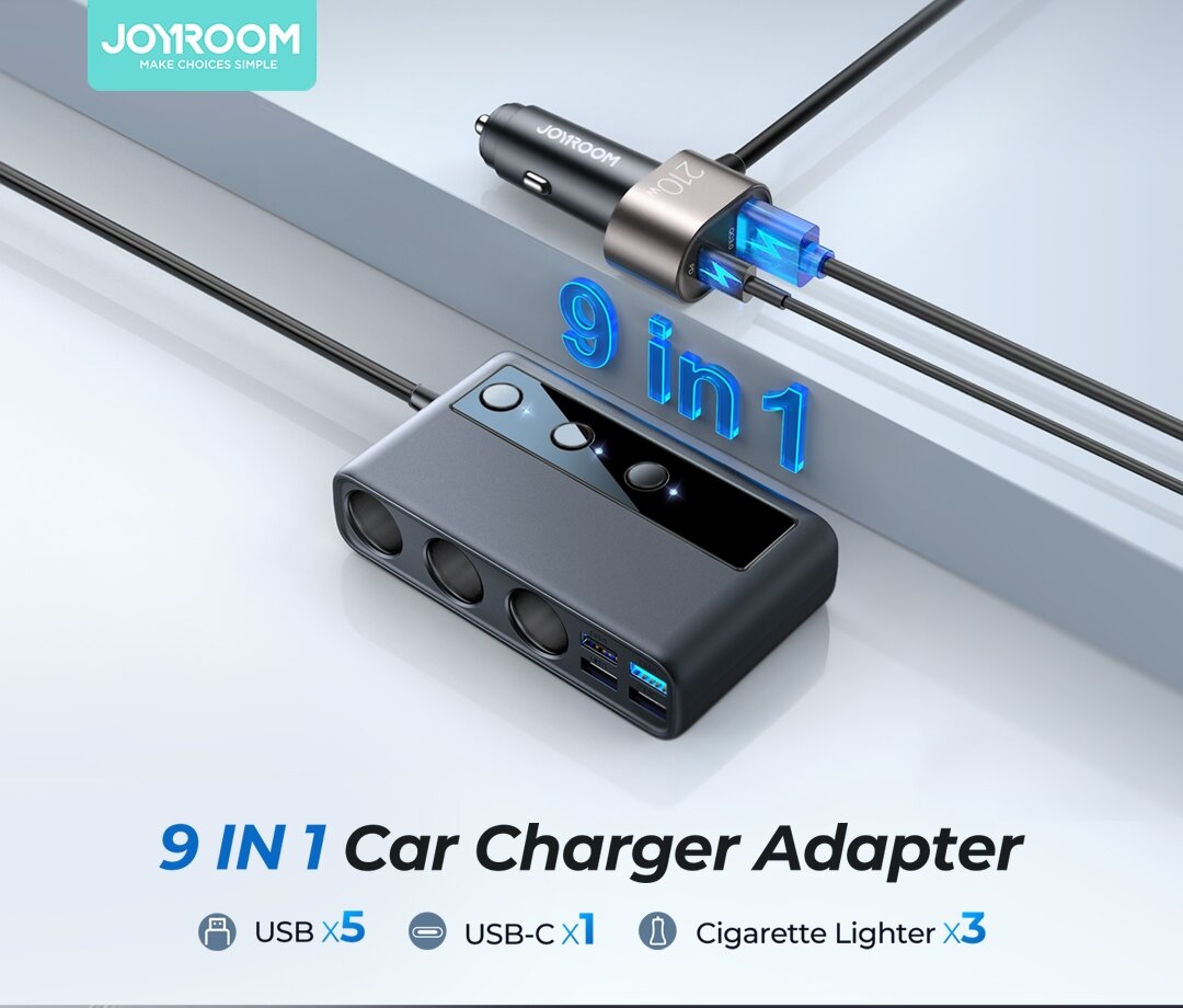 Отзывы на 9 in 1 Автомобильный адаптер Joyroom, 210W, быстрая зарядка QC3.0 + PD, LED-дисплей, 3 прикуривателя + 6 USB