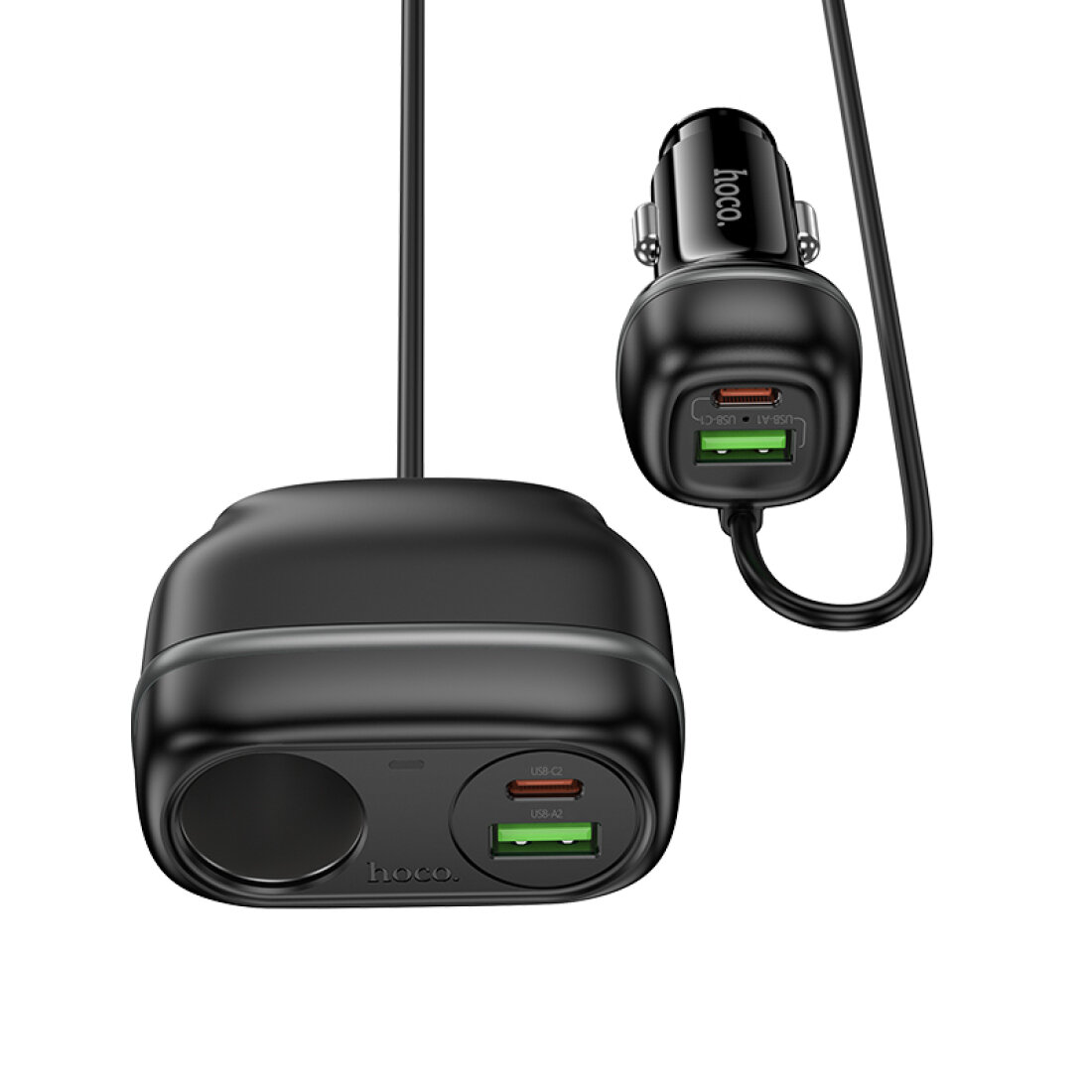 10 цен на Разветвитель прикуривателя на 2 USB QC3.0 18W + 2 PD 30W + 1 прикуриватель на проводе Z59A, черный