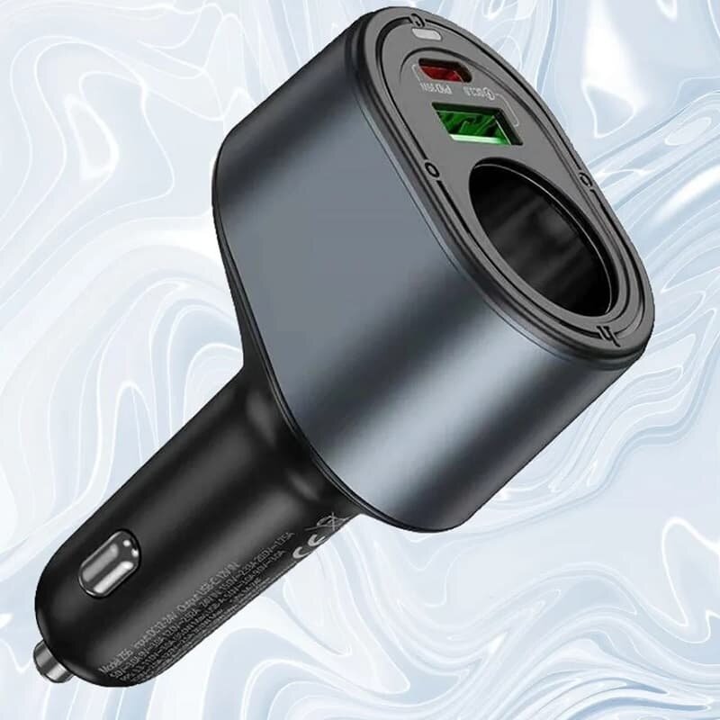 Отзывы на Разветвитель в прикуриватель / автомобильное зарядное устройство 1 прикуриватель + USB-C PD 35W + USB A QC3.0 черный