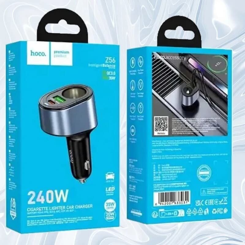 Разветвитель в прикуриватель / автомобильное зарядное устройство 1 прикуриватель + USB-C PD 35W + USB A QC3.0 черный информация: