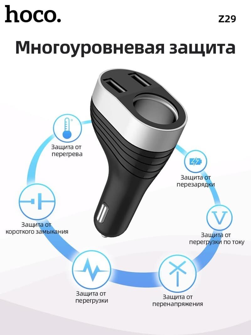 Отзывы на Разветвитель HOCO Z29 LED 1 прикуриватель + 2USB 3,1A черный с дисплеем