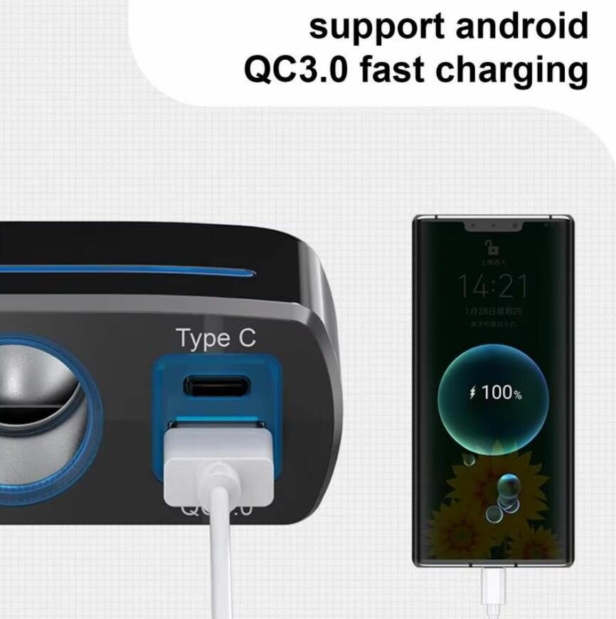 Отзывы на Разветвитель прикуривателя с USB и Type-C Shunwei 2 Hole Car Cigarette Lighter With Fast Charger (SD-1928D)