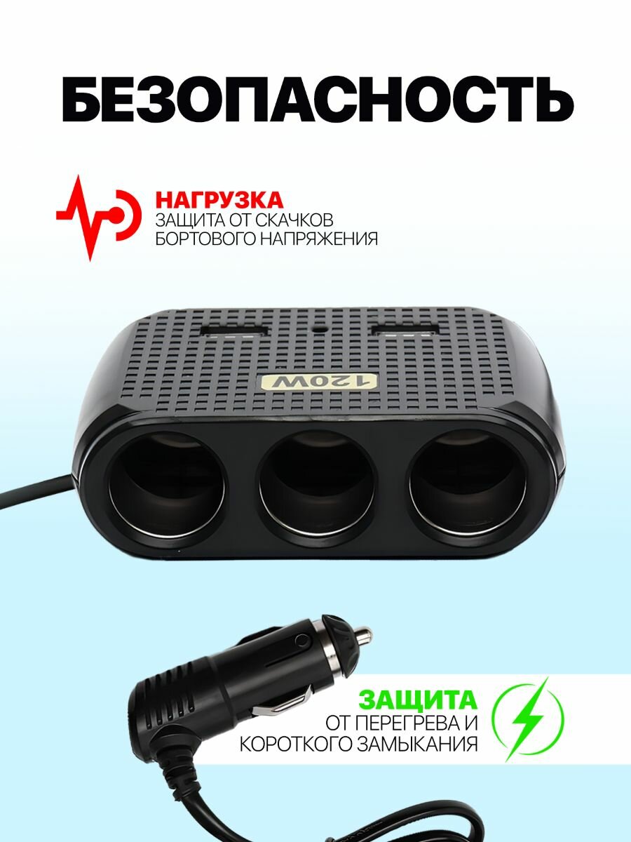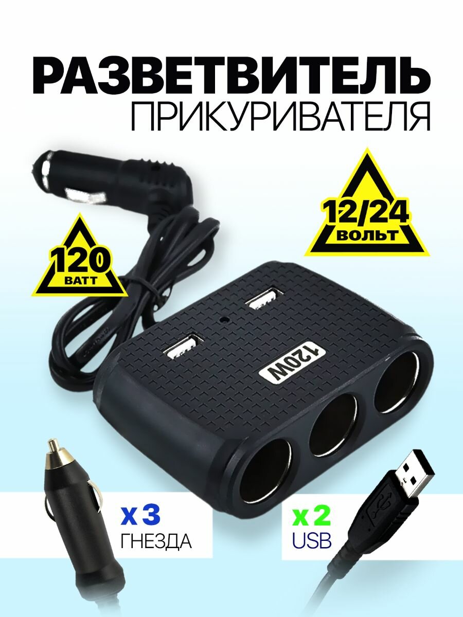 Отзывы на Разветвитель в машину на 3 гнезда прикуривателя, 2 USB Pervoi CTC 614 для авто, черный