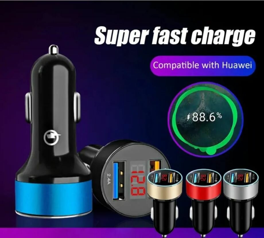 Отзывы на Разветвитель прикуривателя для авто KICT/ 2 гнезда USB/ Быстрая зарядка, серебрянный