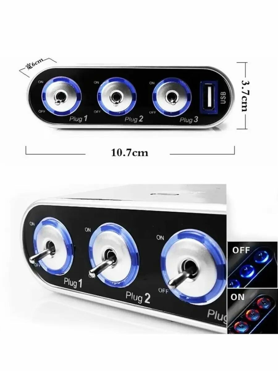 Разветвитель прикуривателя автомобиля 3 входа 60Вт с USB, зарядное устройство 12/24 В, MyLatso зарядка для телефона и видеорегистратора в машину информация: