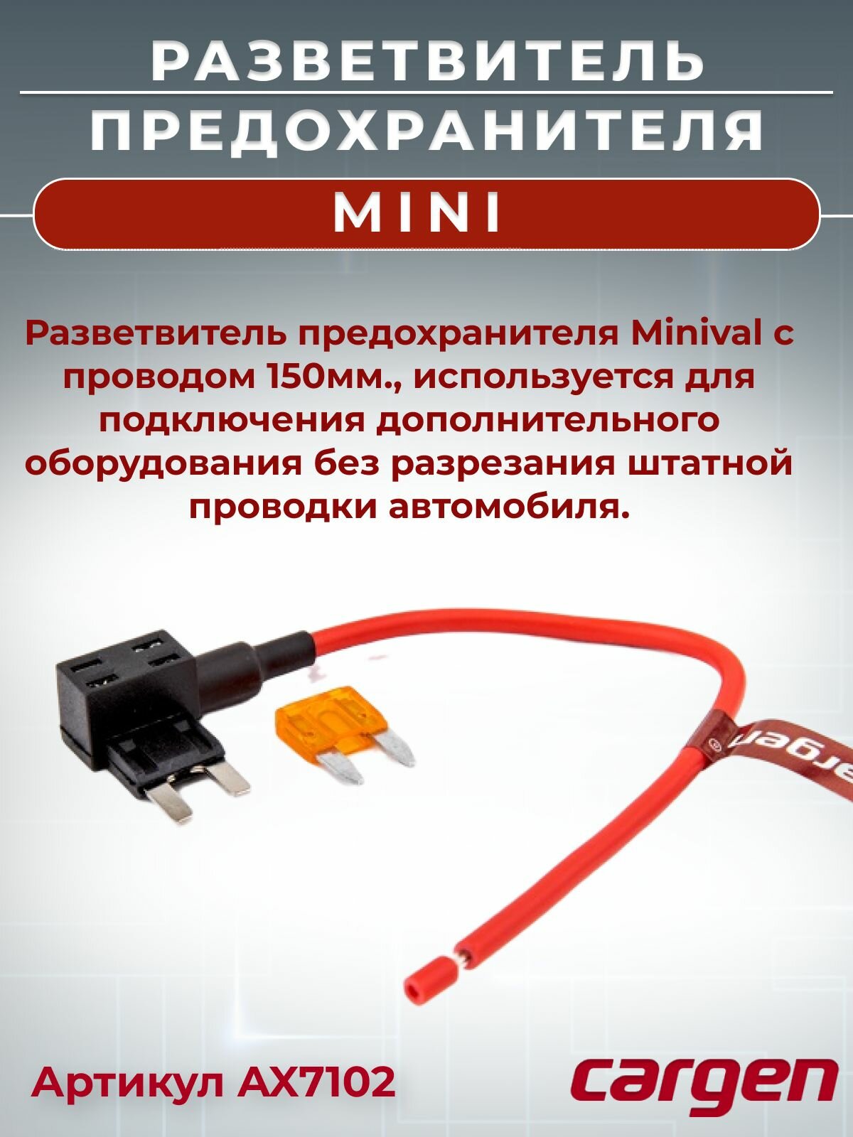 Разветвитель предохранителя Mini (Мини) автомобильный с предохранителем 5А для подключения дополнительного оборудования к штатному блоку длина 150 мм информация: