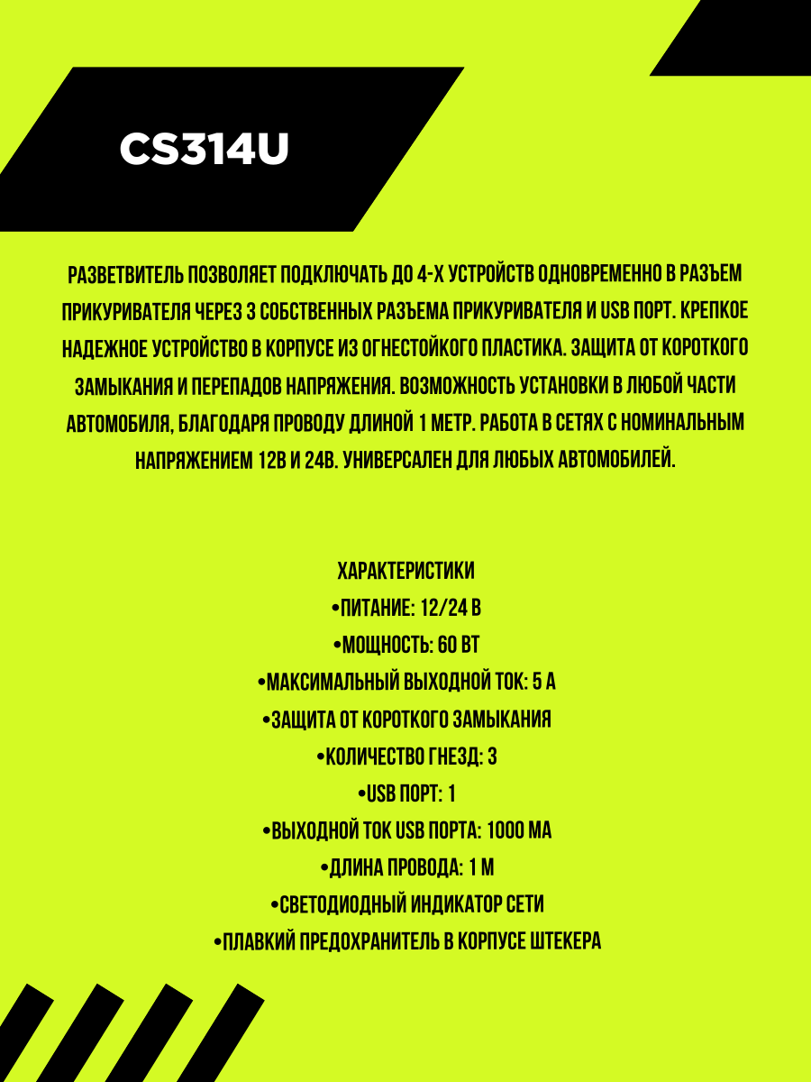 Разветвитель прикуривателя AVS CS314U серебристый информация:
