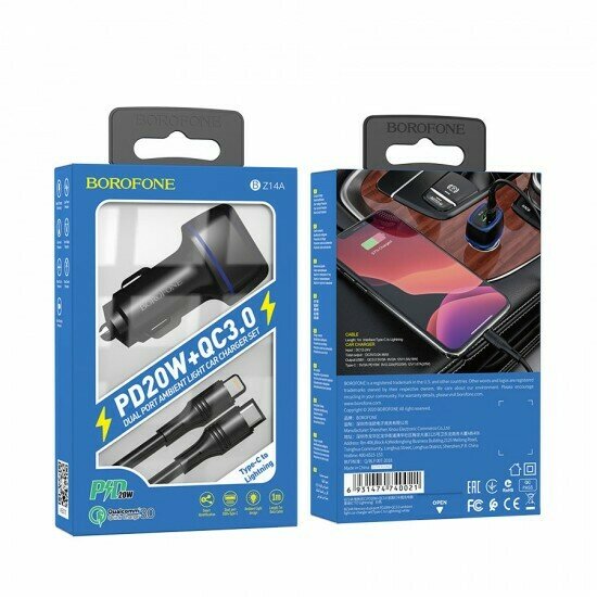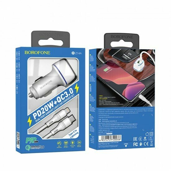 Автомобильная зарядка Borofone BZ14A 3A QC3.0, Type-C/Lightning, 012347 Белый информация:
