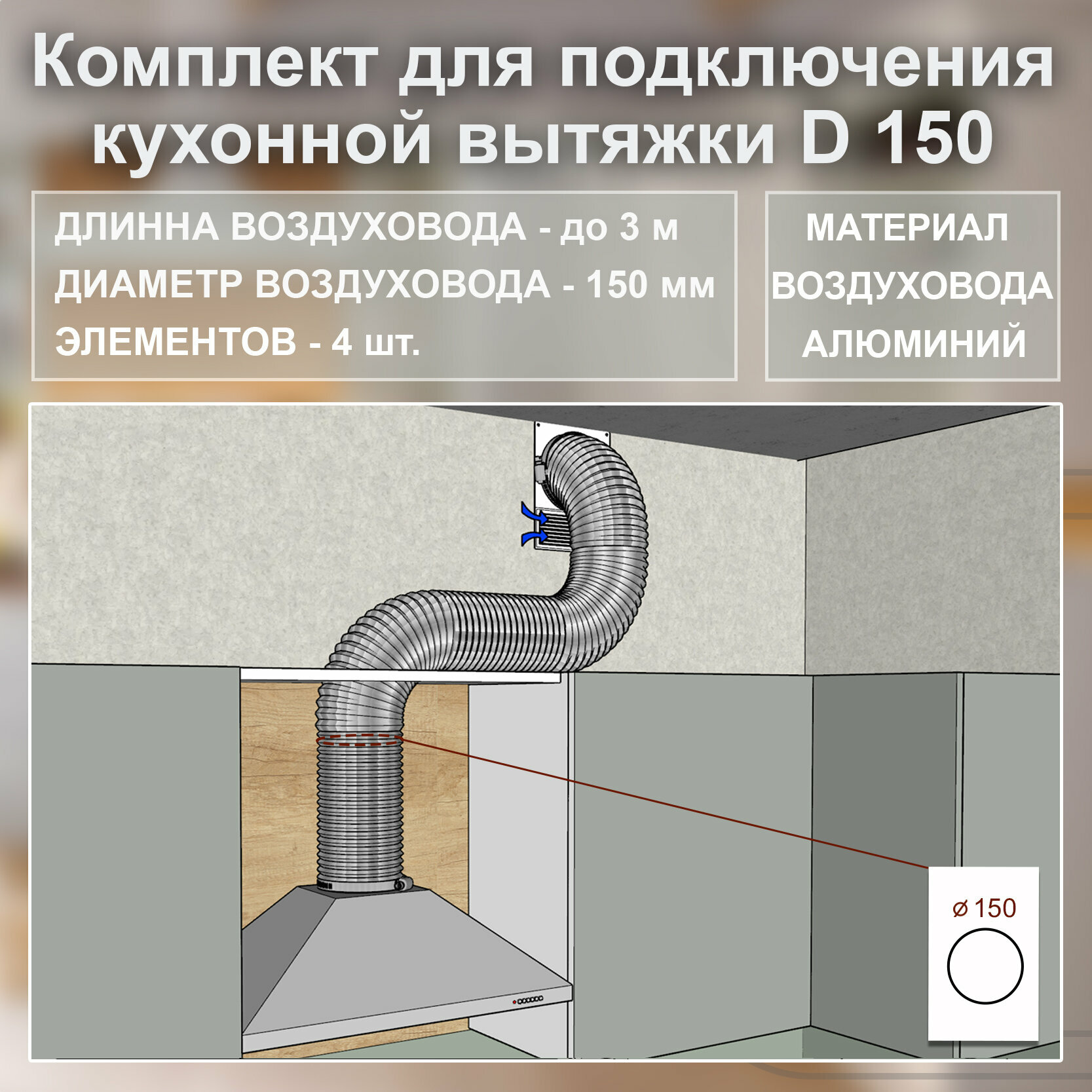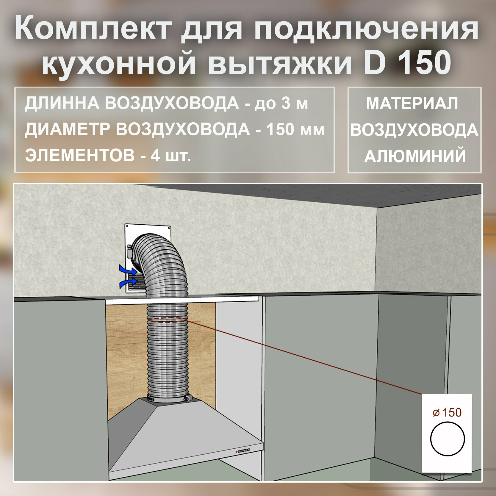 (Код: 150-Р-Х) Grand&Germes Набор для подключения кухонной вытяжки D150 информация: