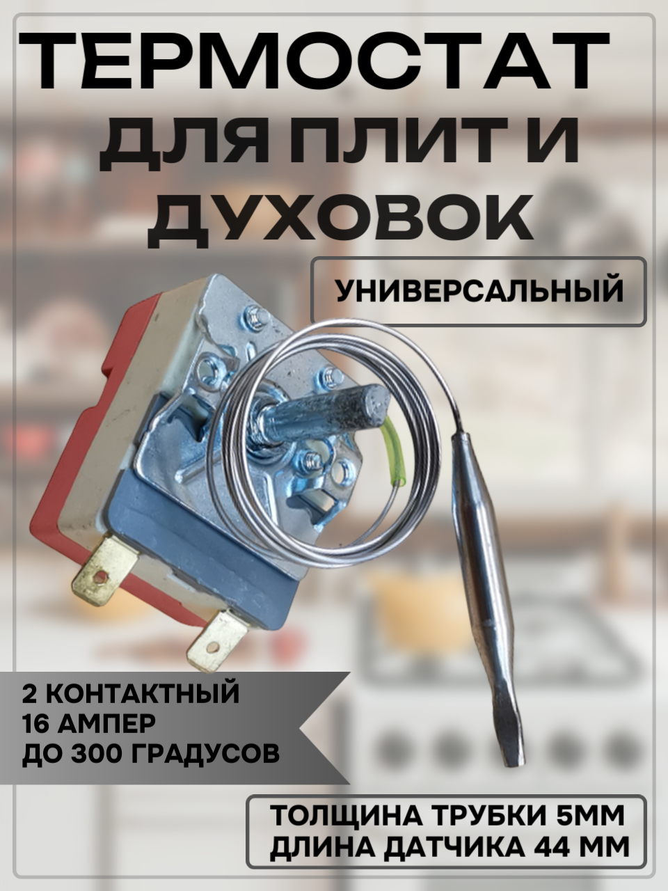Терморегулятор для духовых шкафов, до 300 °C, 2 контакта, 16 A, ~250 В информация: