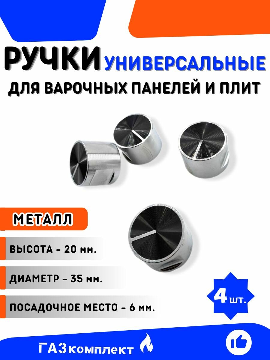 Ручки для варочных панелей/плит универсальные для всех типов (Модель 8) - комплект 4 шт. металлические информация: