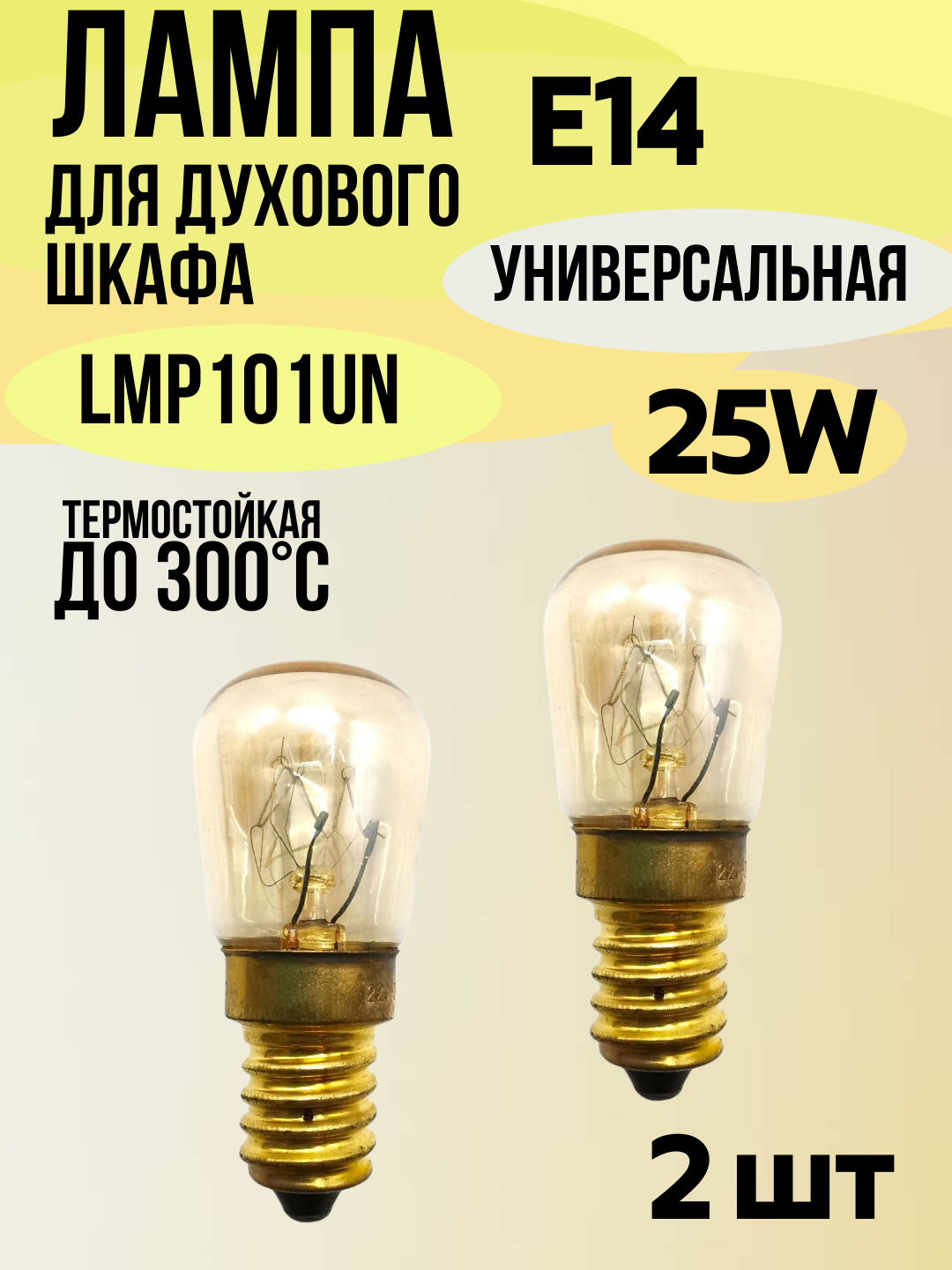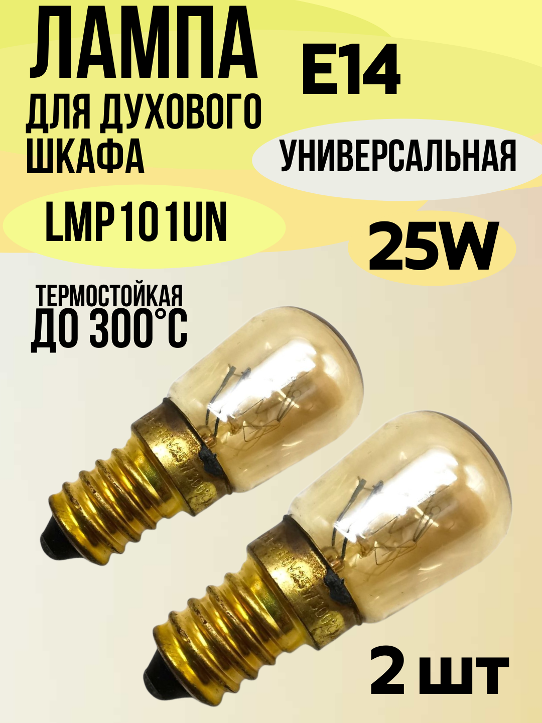 Лампа духового шкафа цоколь E14 мощность 25 Вт жаростойкая до 300 °C LMP101UN 2 штуки информация: