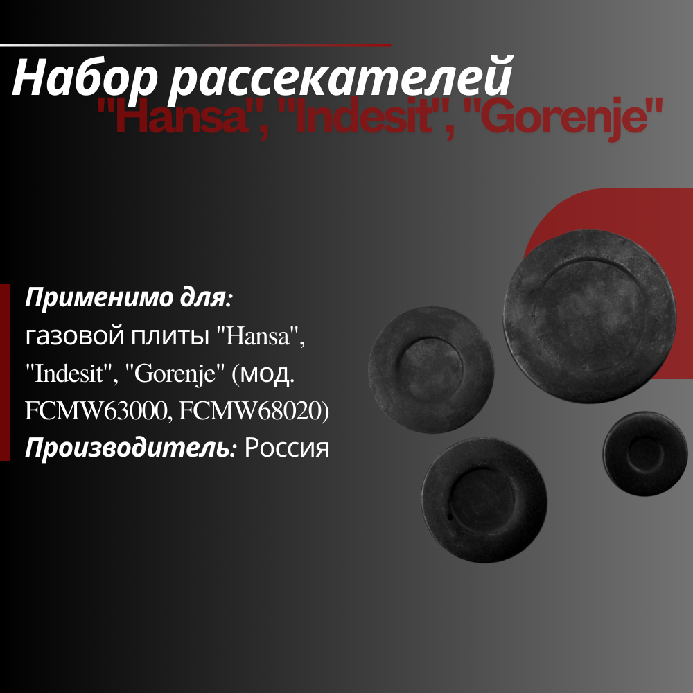 10 цен на Крышка рассекатель для конфорок газовой плиты Hansa Indesit Gorenje (мод. FCMW63000, FCMW68020) набор