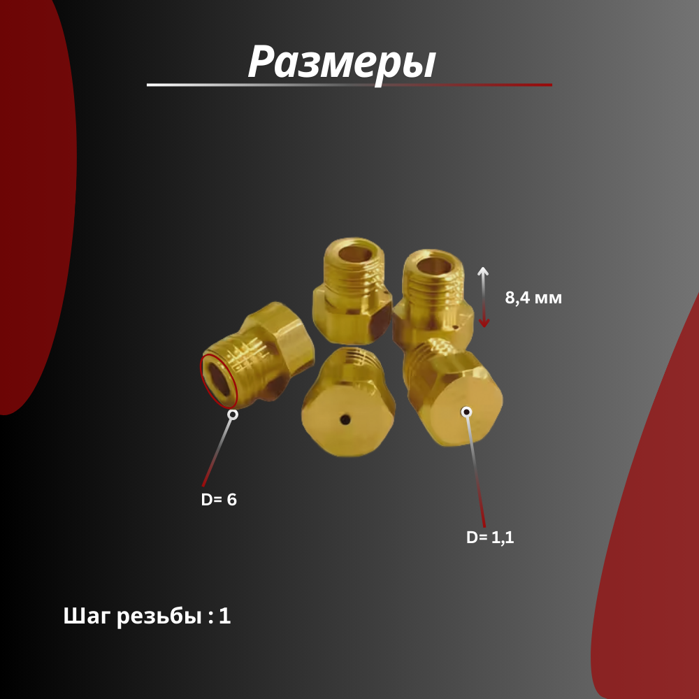 10 цен на Жиклер для газовой плиты М6х1 природный газ набор 5 шт сопла плиты
