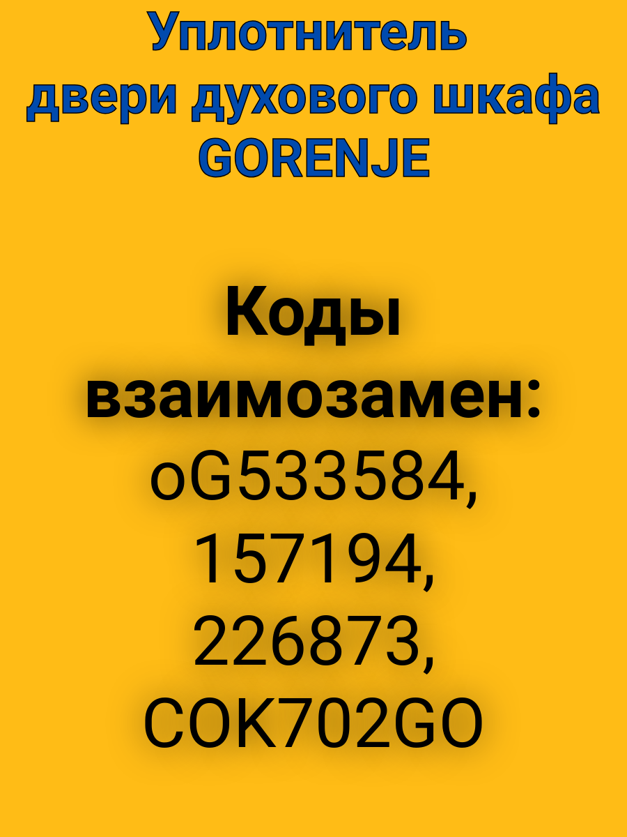 Уплотнитель двери духовки GORENJE, Горенье информация: