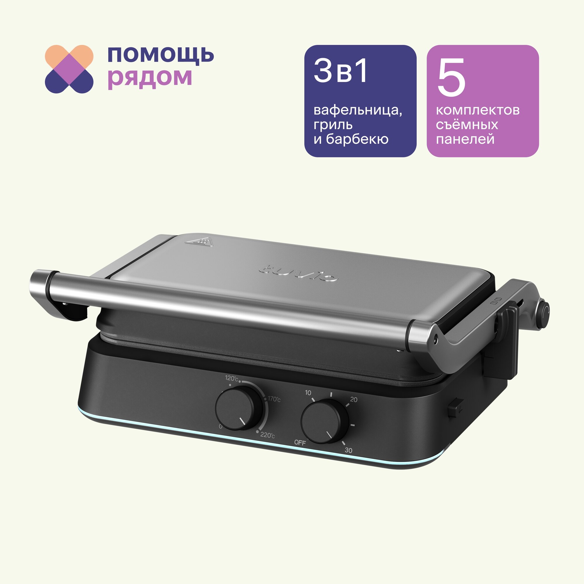 Вафельница + гриль 2в1 с настройкой времени и температуры Tuvio TSM02, серый информация: