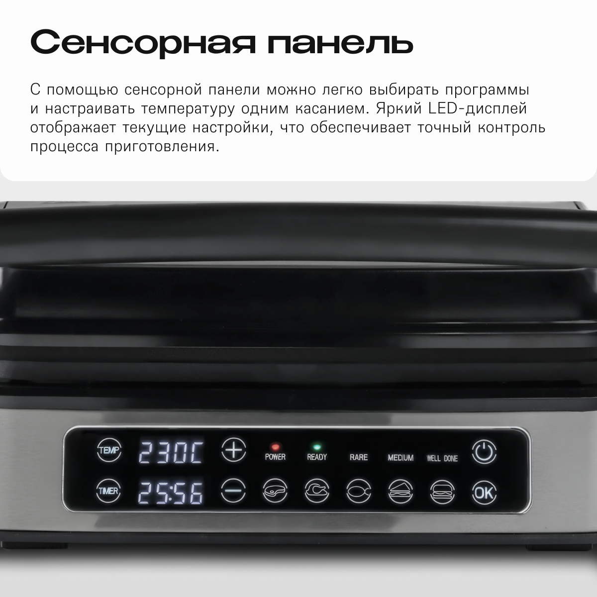 Электрический гриль с режимом барбекю, 5 программ, мощность 2000 Вт, серебристый информация:
