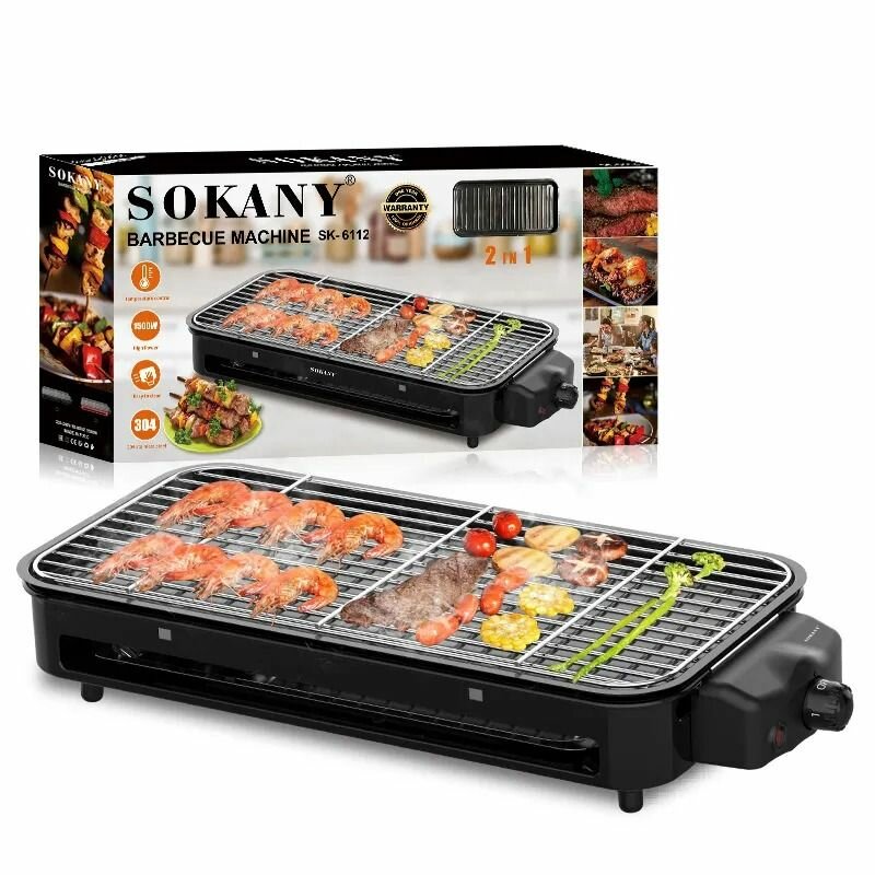 10 цен на Электрический гриль SOKANY SK-6112, черный, мощность 1500Вт, металл, пластик