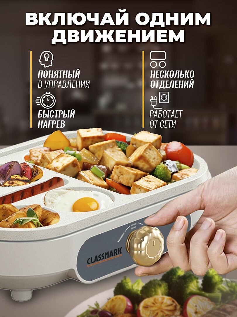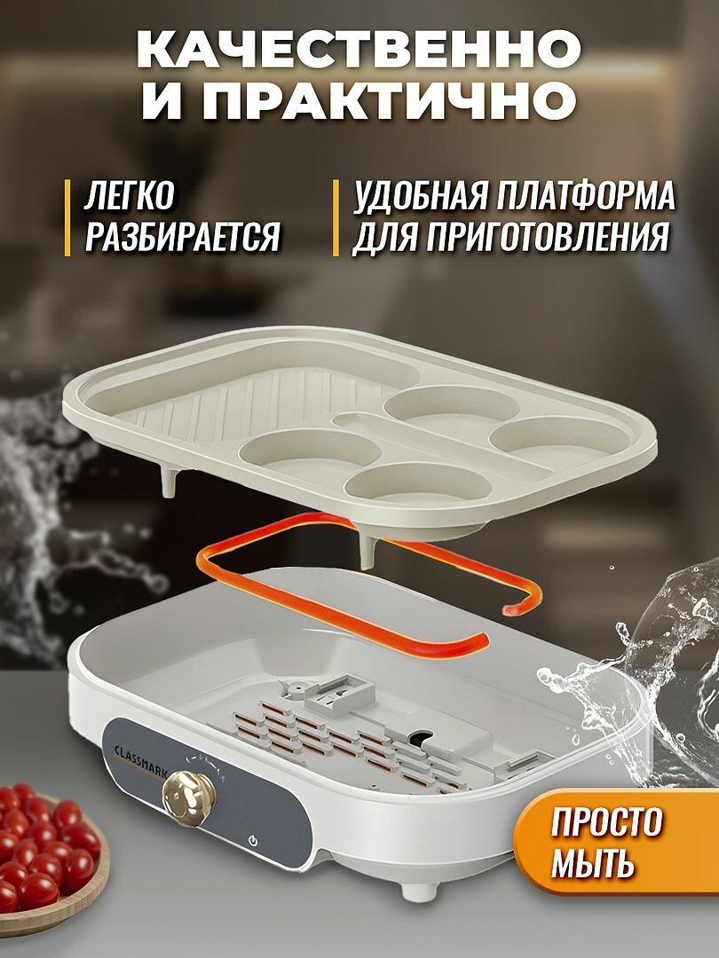 Гриль электрический Classmark WJ23110701 электрогриль, мощность 800 Вт, механическое управление, белый информация: