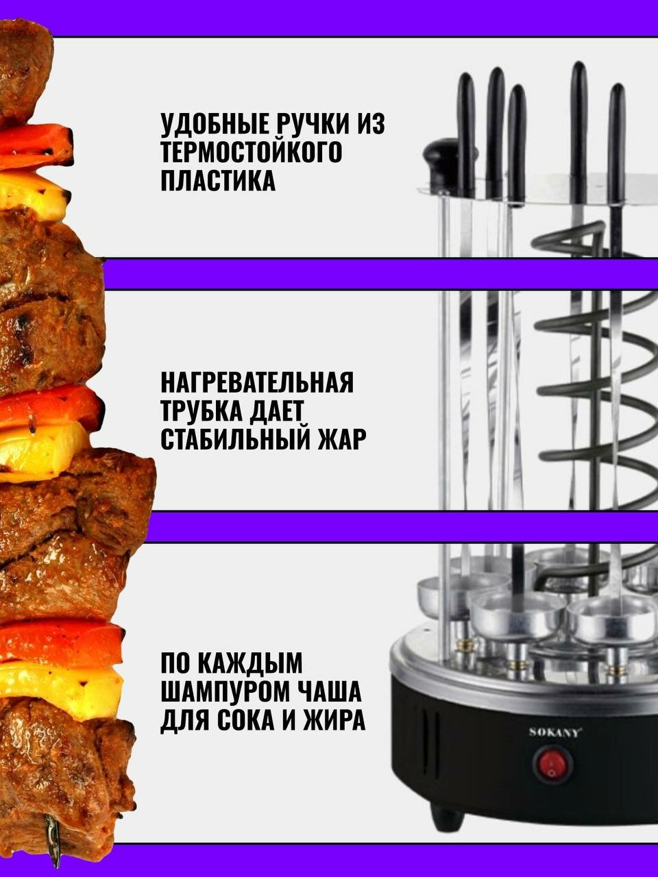 Электрошашлычница Sokany SK-6113 для приготовления сочных шашлыков с 6 шампурами информация: