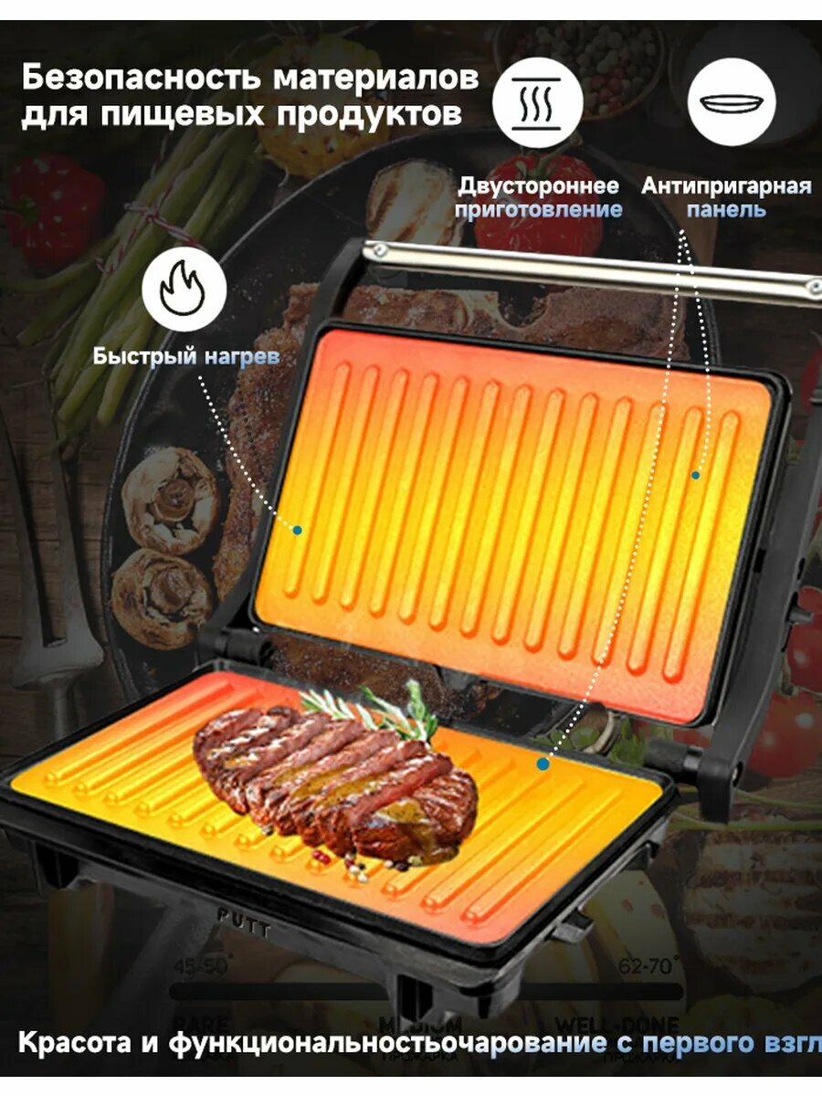 Отзывы на Электрогриль PUTT Black, антипригарное тефлоновое покрытие, защита от перегрева