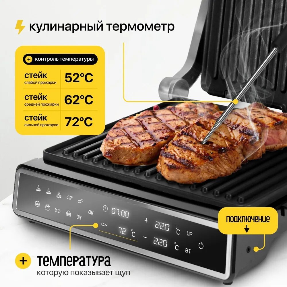 Гриль электрический со съемными панелями; 2000 Вт; электрогриль; металлический 10 программ информация: