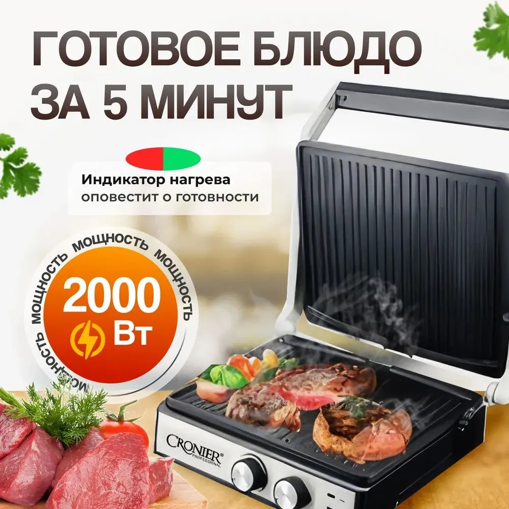Отзывы на Электрический гриль со съемными панелями и независимым нагревом Cronier CR-1705, 2500 Вт