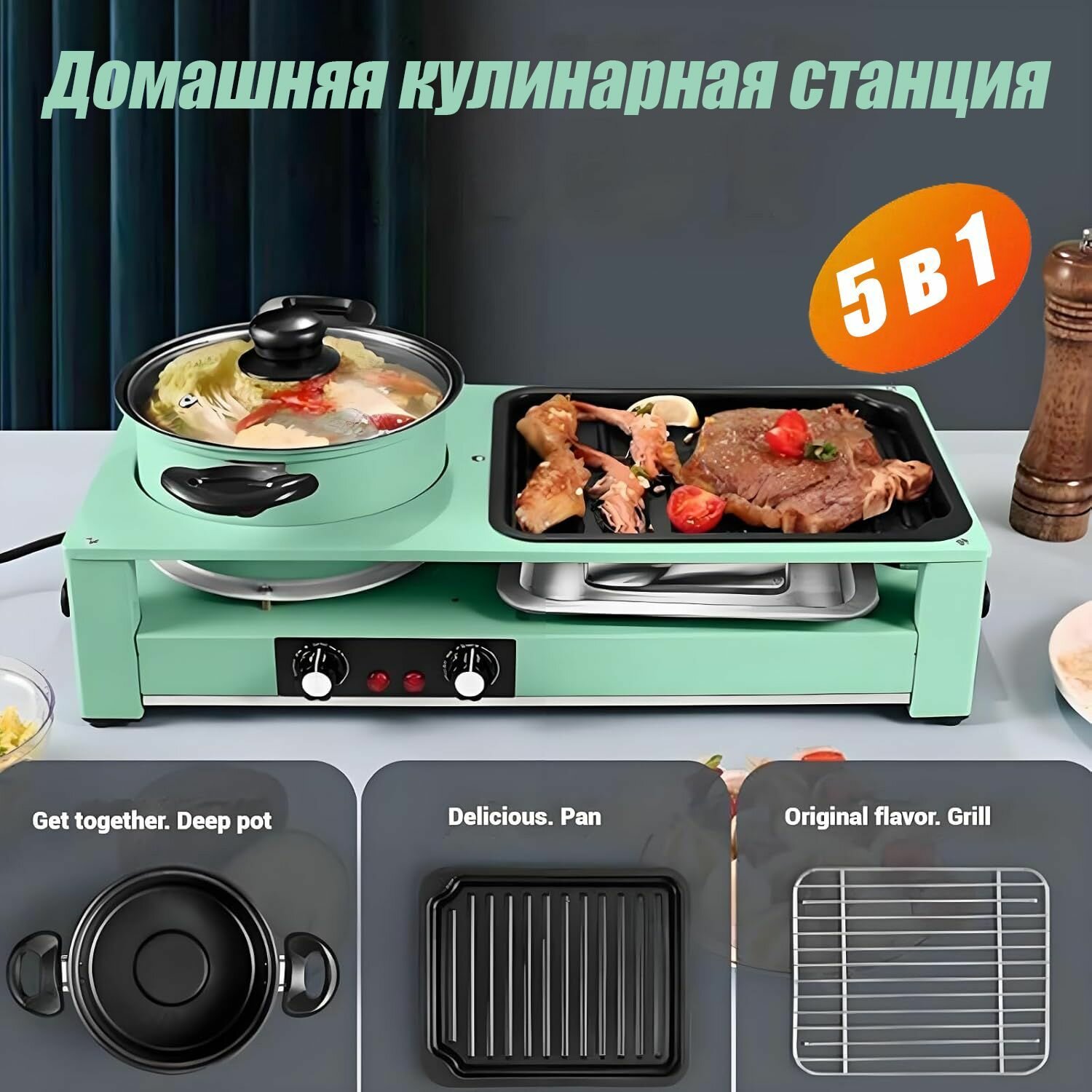 Домашняя кулинарная станция "5 в 1", мощность 2200Вт, антипригарное покрытие информация: