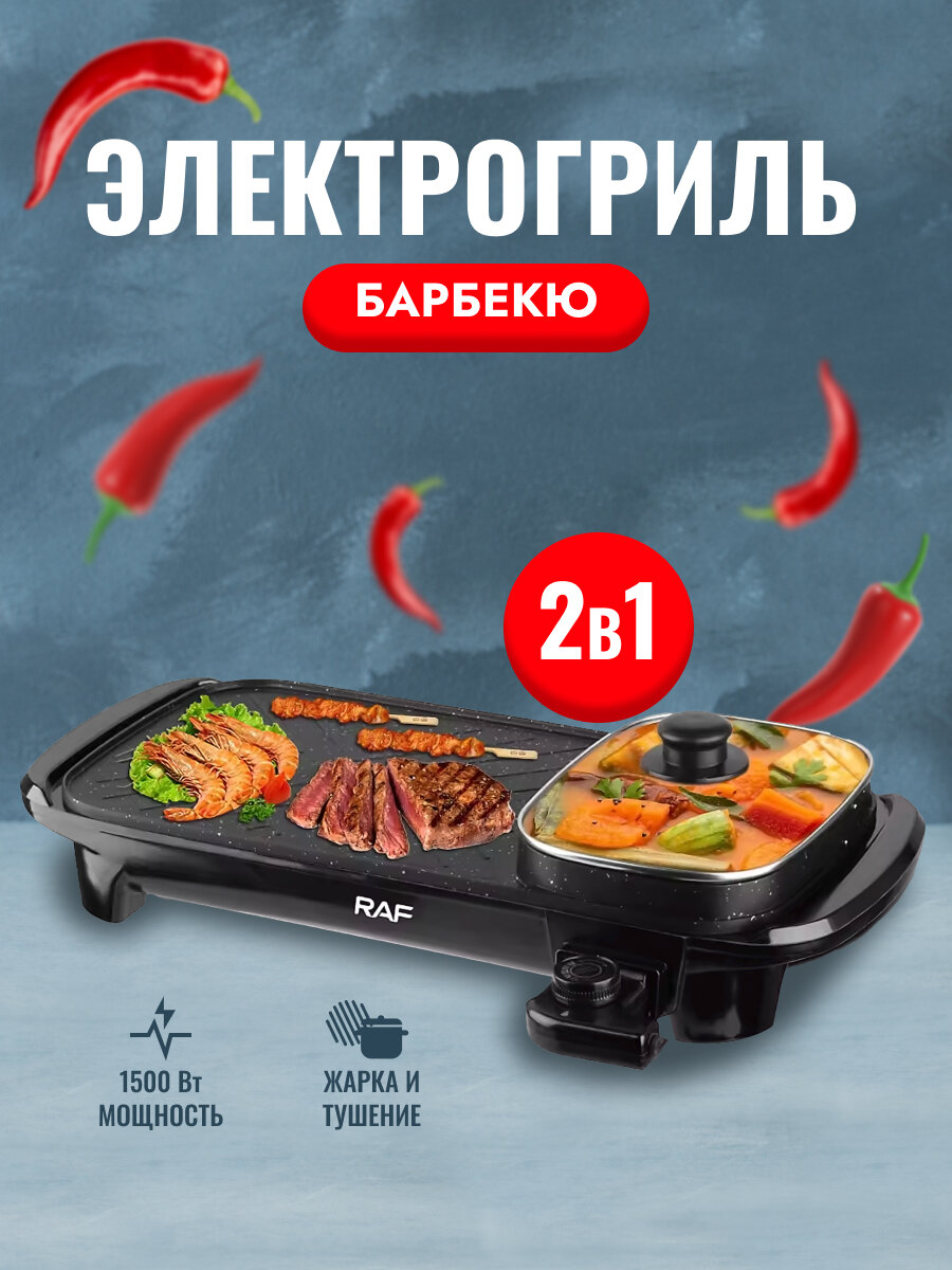 10 цен на Электрогриль барбекю антипригарный 1500Вт