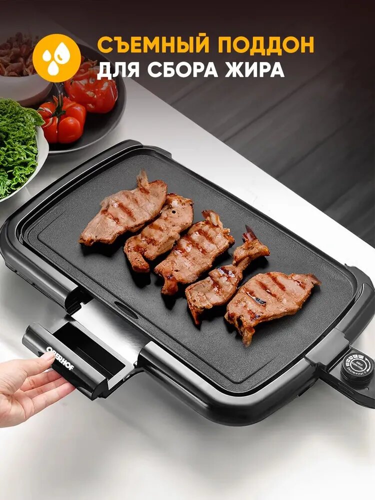10 цен на Электрогриль настольльный открытый для дачи и дома с антипригарным покрытием, 5 режимов нагрева, готовит без масла OBERHOF Grillknig TL-45
