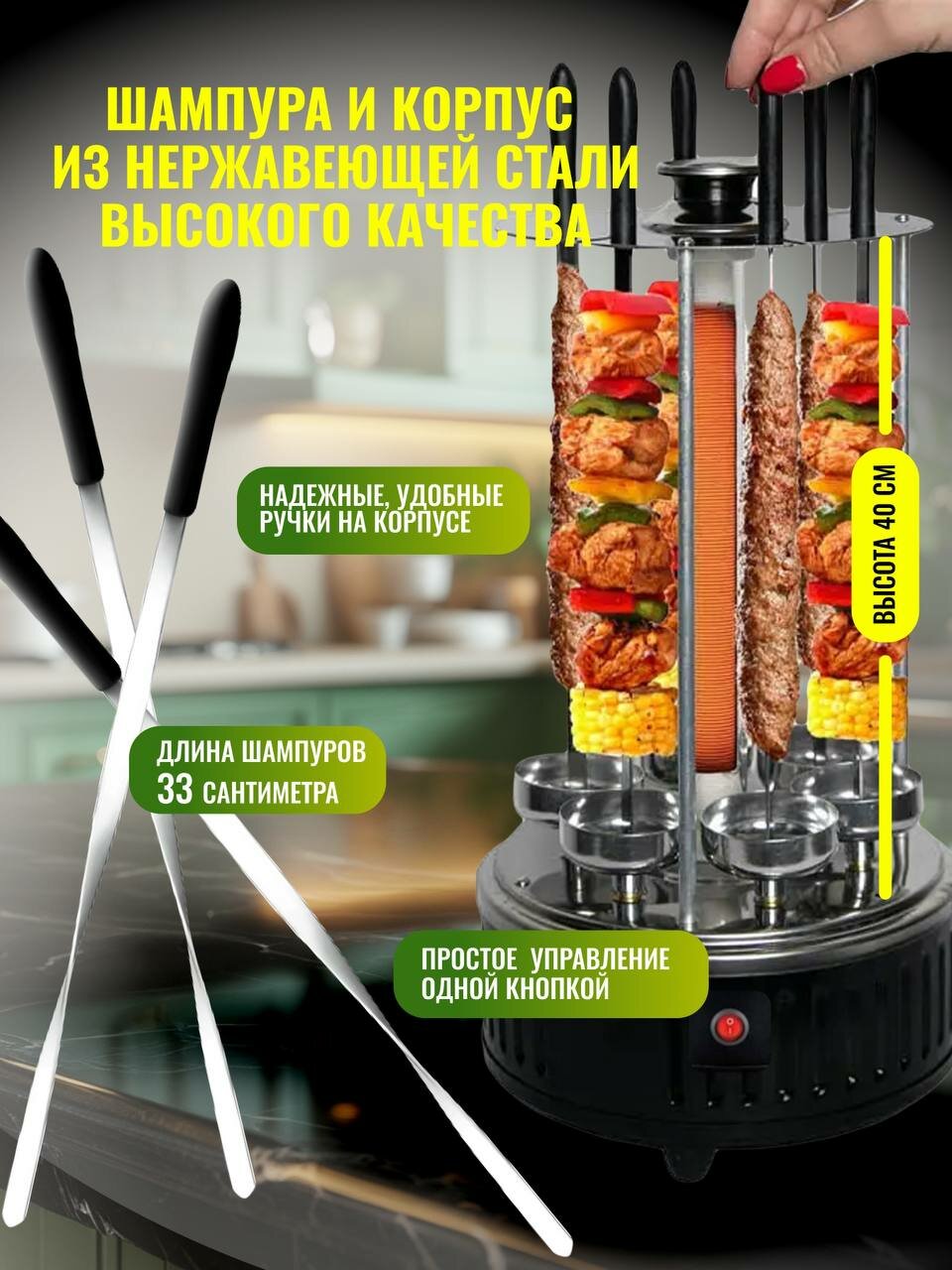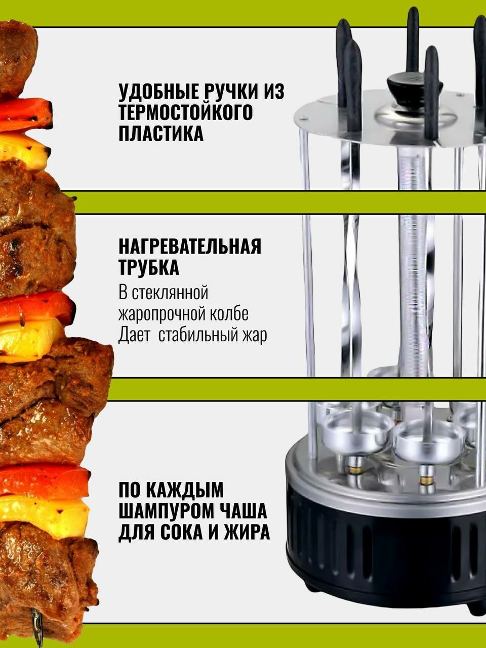 Электрошашлычница для приготовления сочных шашлыков с 6 шампурами информация: