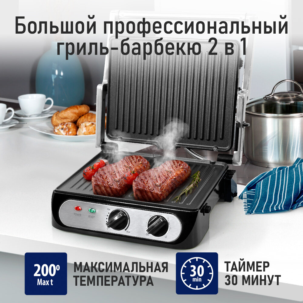 Гриль электрогриль STINGRAY ST-SM1217A съемные панели барбекю черный/сталь информация: