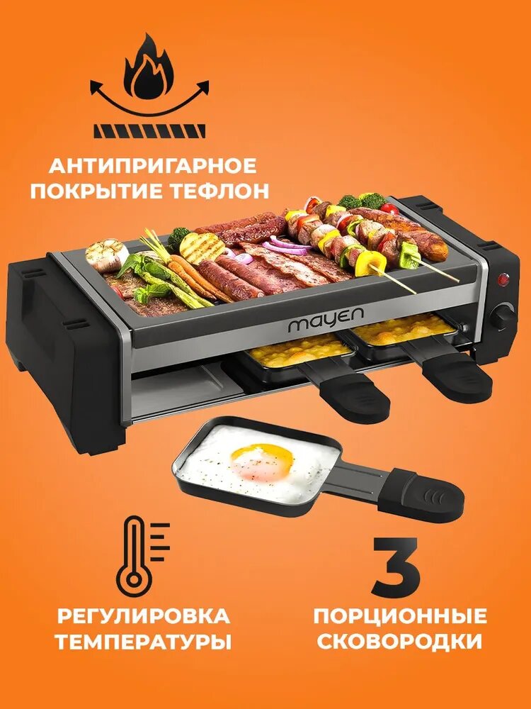 10 цен на Настольный электрогриль-барбекю, раклетница-гриль электрическая, антипригарное покрытие MAYEN Hitzeschatz B-14