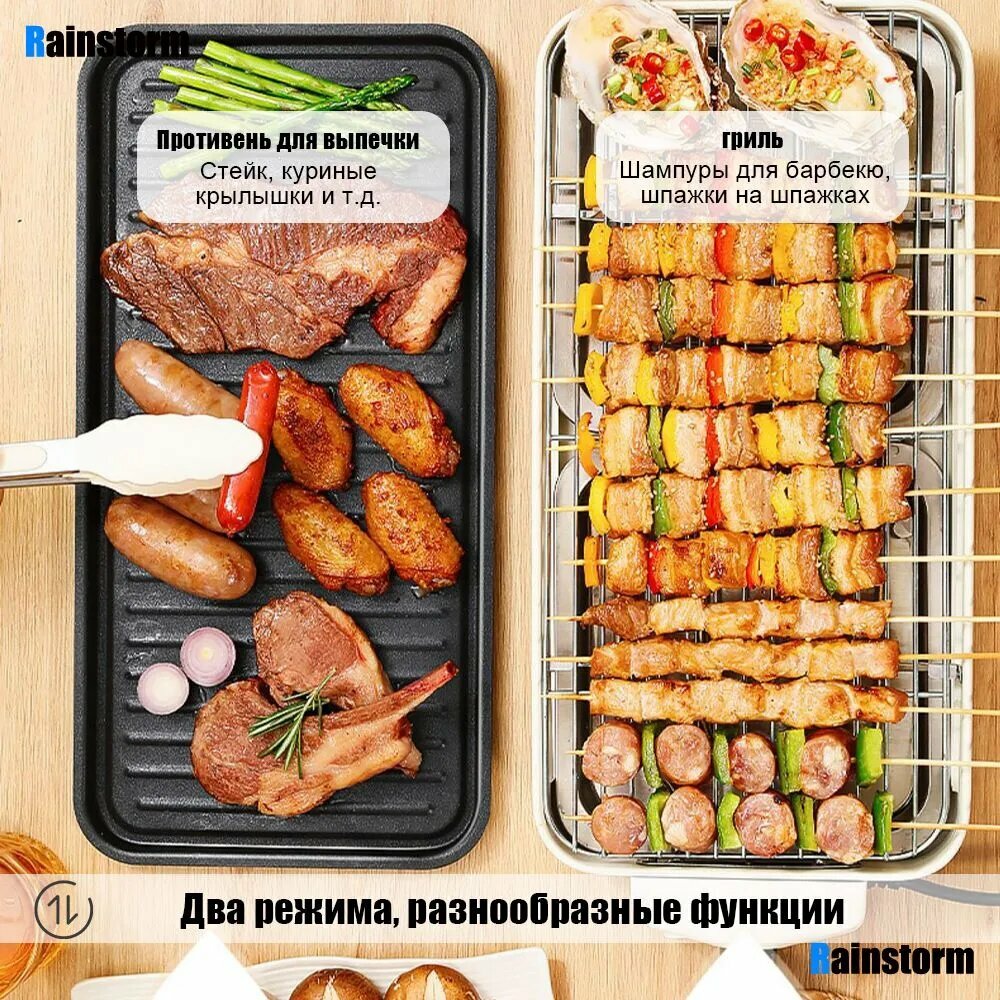 10 цен на Электрическая печь-барбекю, бездымный домашний барбекю, открытый многофункциональный электрический гриль "2 в 1"
