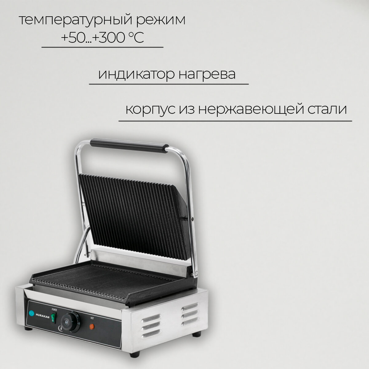 Электрогриль, гриль электрический Hurakan HKN-PE34R. 2.2 кВт, нержавеющая сталь, съемный жиросборник, контактный информация: