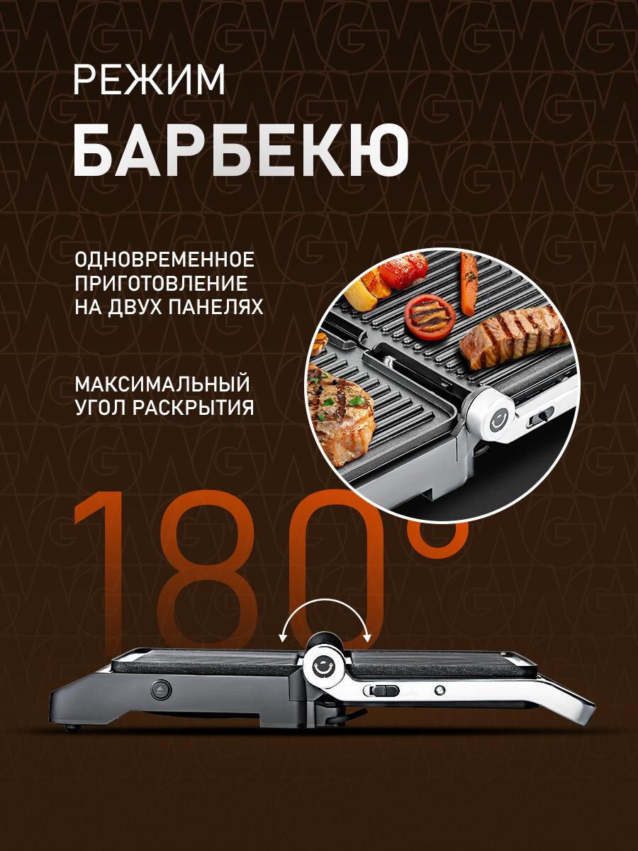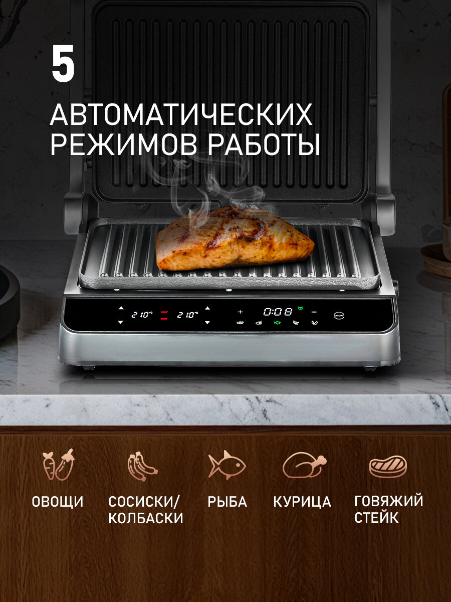 Гриль электрический Weissgauff WCG 250 B Digital Glass, 5 автоматических режимов работы информация: