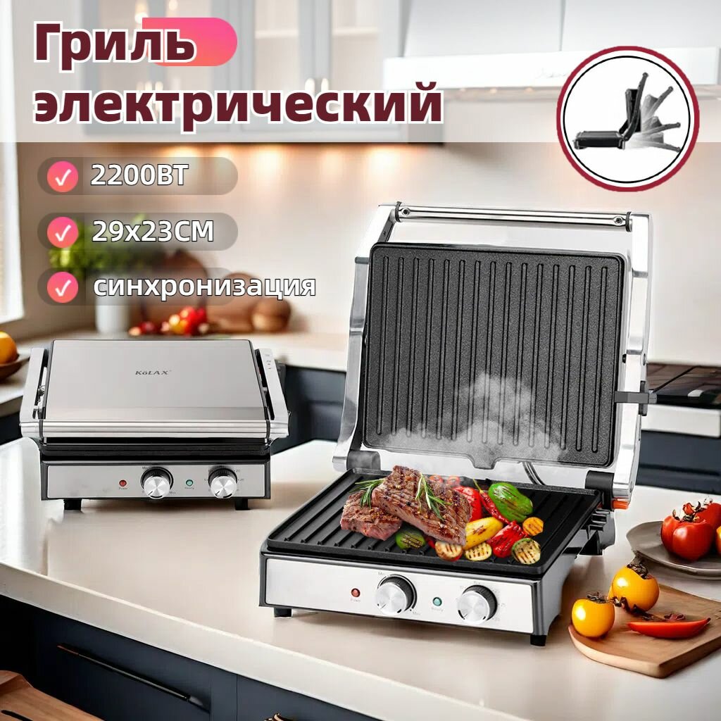 10 цен на Электрогриль CNMJT, чугун, сталь, мощность 2200Вт, регулировка температуры, серый металлик