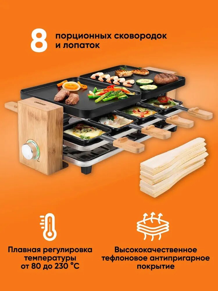 10 цен на Раклетница-грильOberhof Kasekunst JR-08 с антипригарным покрытием, 8 порционных сковородок и лопаток, электрогриль-барбекю