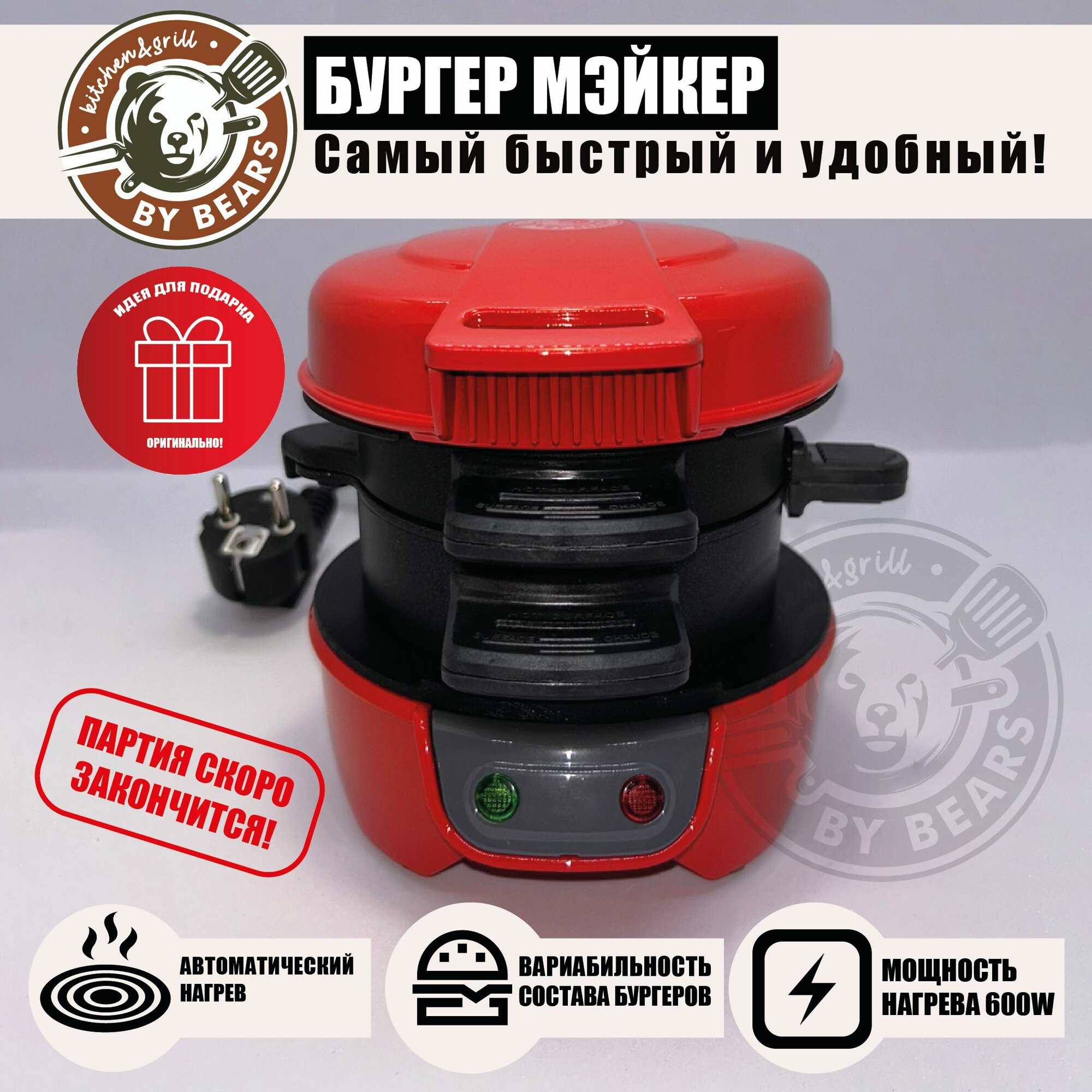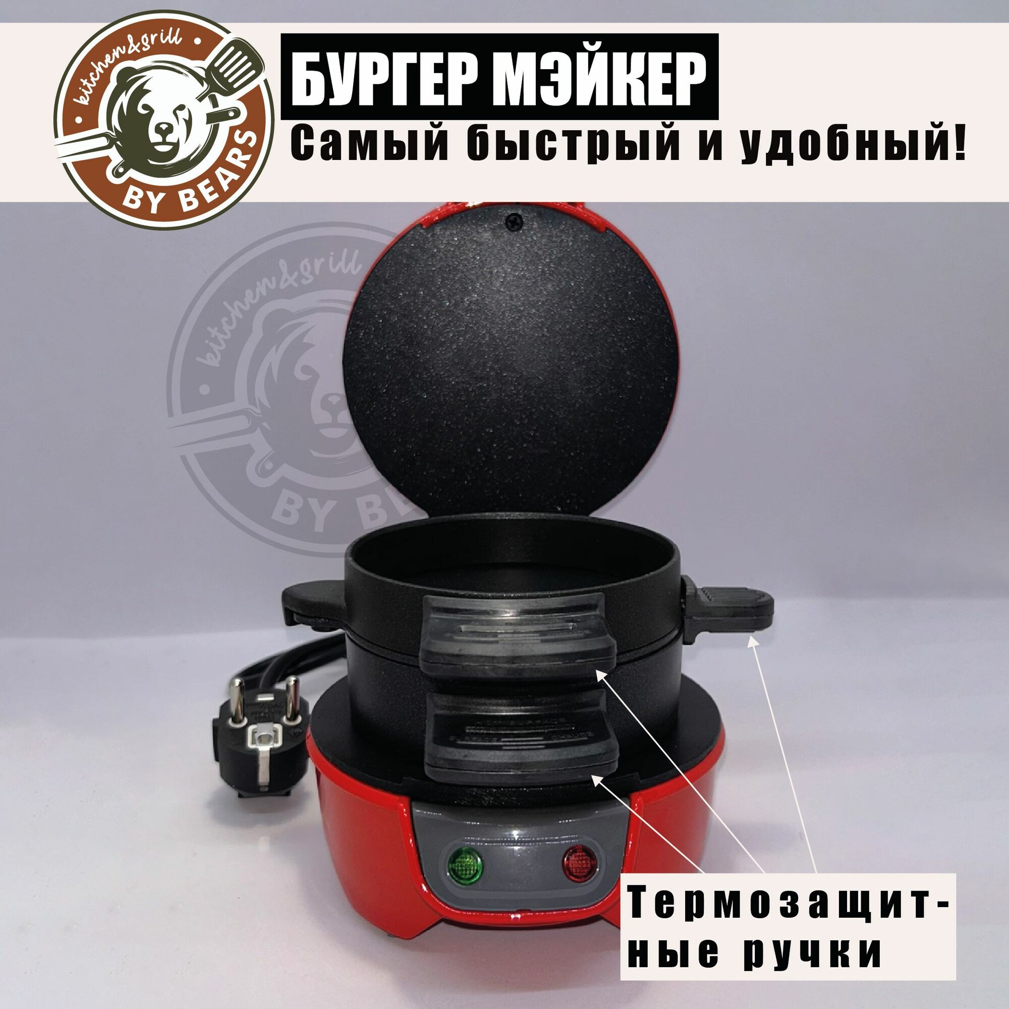 Мультипекарь By Bears "БургерМейкер", для приготовления бургеров, 600Вт, антипригарная поверхность информация: