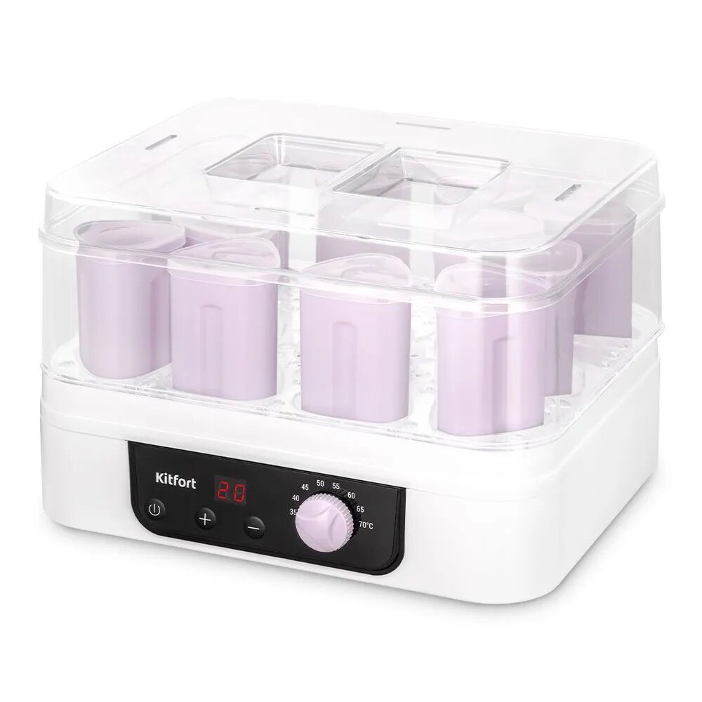 10 цен на Йогуртница Kitfort KT-6396, 12 баночек по 200мл, пластиковая, белая