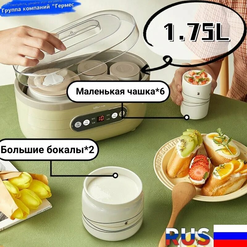 10 цен на Машина для йогурта, 1.75 л, мощность 20Вт, керамическая внутренняя чаша