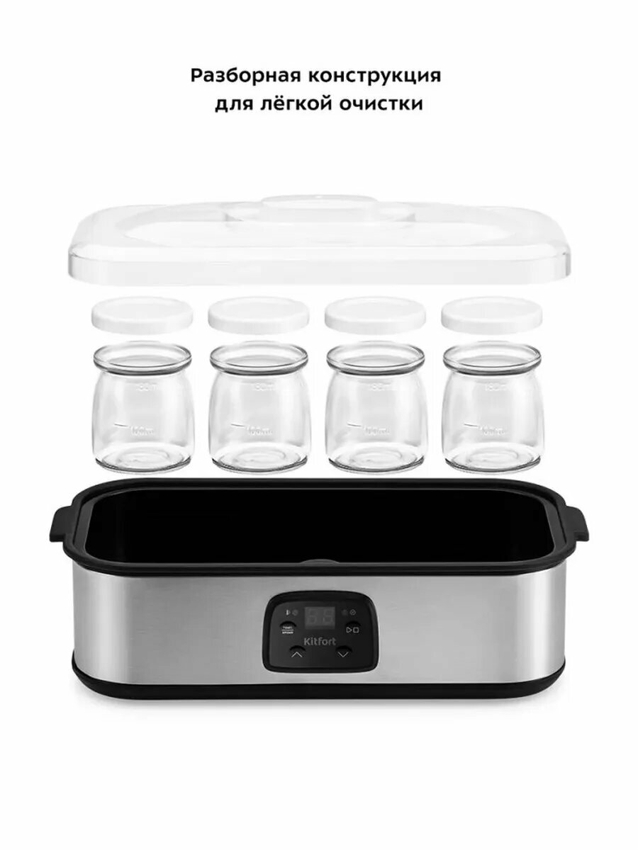 Йогуртница Kitfort KT-2089, электронное управление, дисплей, мощность 30Вт, 8 баночек, серебристая информация: