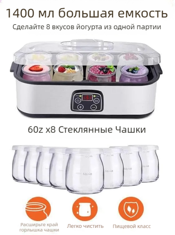 10 цен на Йогуртница, 8 стеклянных баночек, таймер обратного отсчета, Машина для приготовления йогурта
