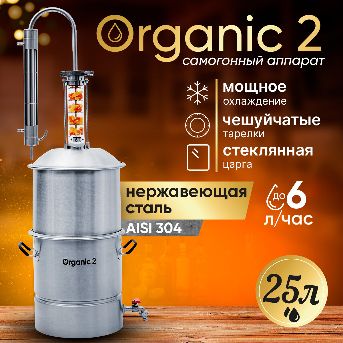 Самогонный аппарат Органик 2024 с увеличителем бака на 25 л колонного типа, дистиллятор со стеклянной царгой информация: