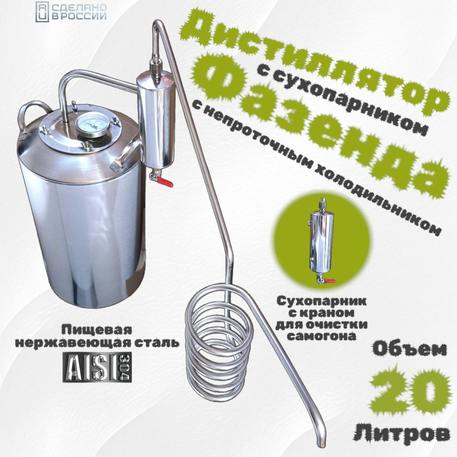 Отзывы на Самогонный аппарат дистиллятор Дачный-Фазенда 20 литров с сухопарником , пищевая нержавеющая сталь AISI 304