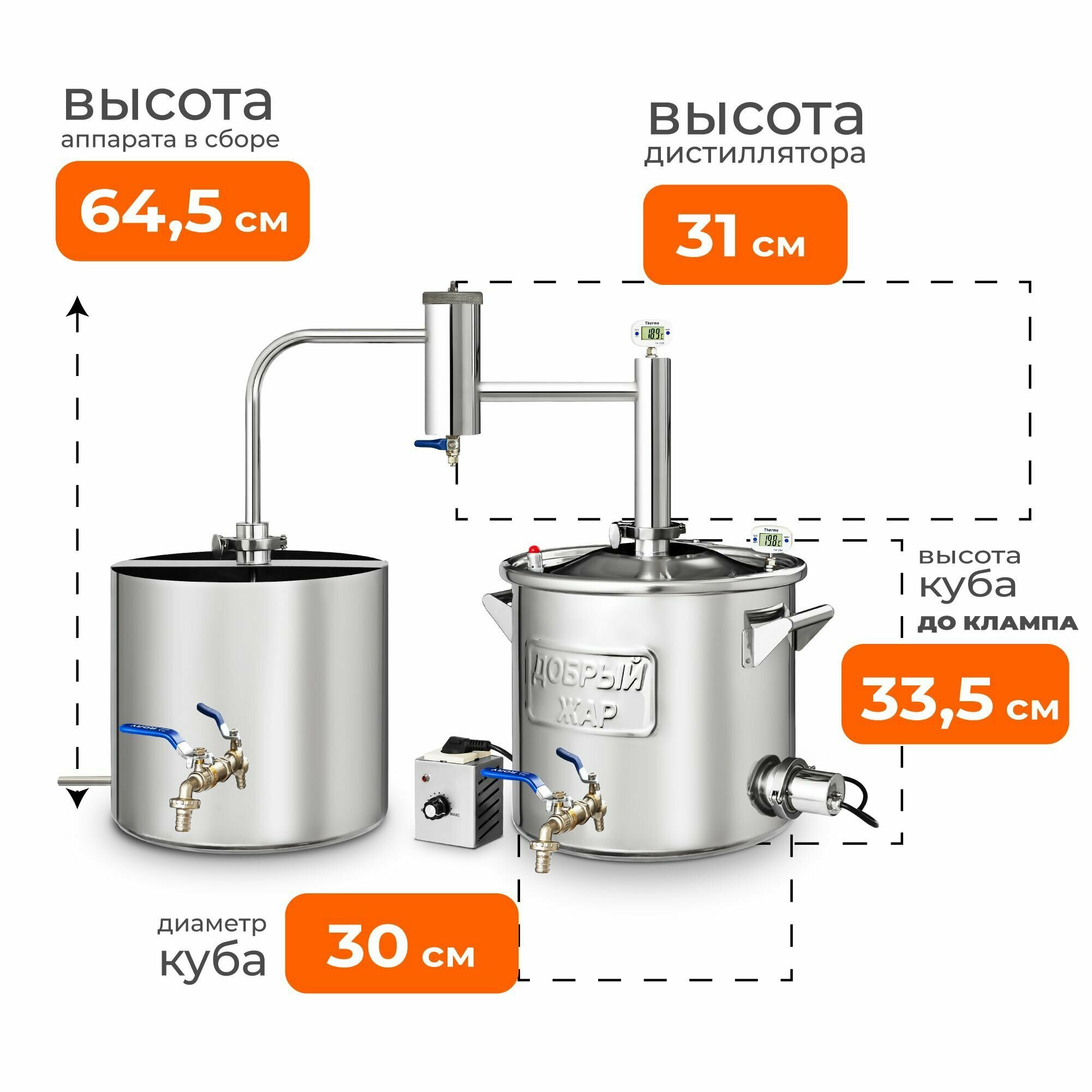 10 цен на Самогонный аппарат "Добрый Жар" Дачный 20 литров с ТЭН непроточный дистиллятор с разборным сухопарником