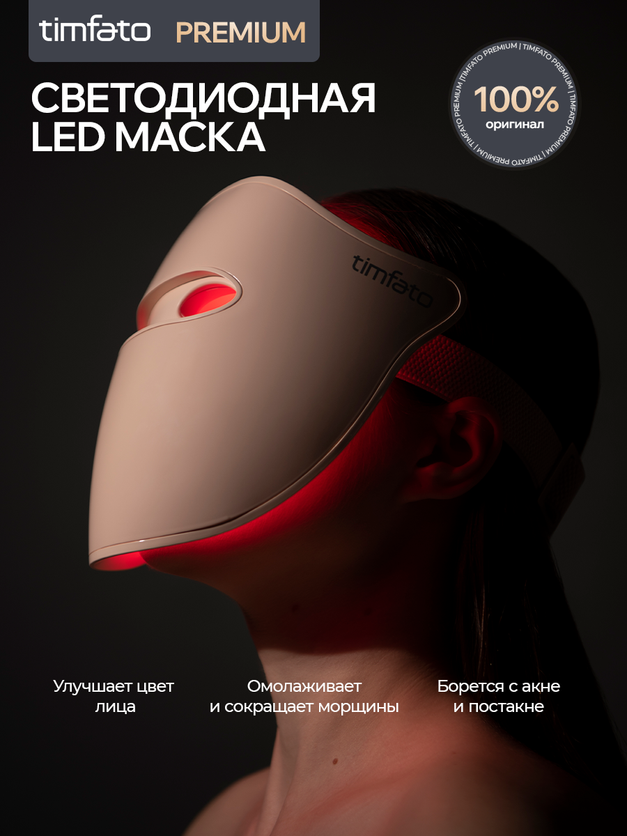 Светодиодная LED Маска для лица TIMFATO, фототерапия против морщин, беспроводная, для всех типов кожи информация: