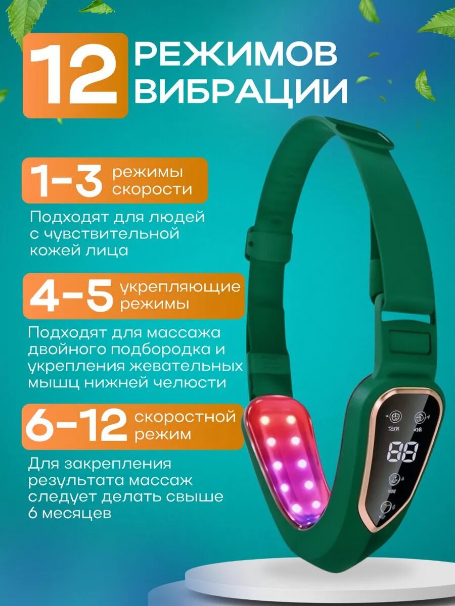 Светодиодный лифтинг массажер для подтяжки лица и щек / Фотонный микротоковый бандаж для лица информация: