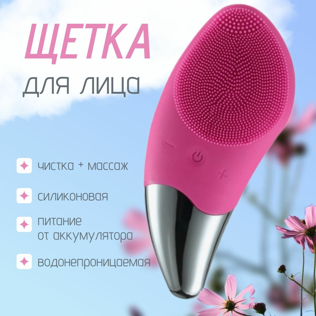 Электрическая силиконовая щетка массажер для чистки лица / Аккумуляторный спонж для ухода за кожей темно-розовый информация: