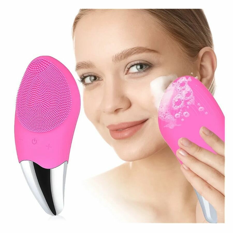 Отзывы на Электрическая силиконовая щетка массажер для чистки лица / Аккумуляторный спонж для ухода за кожей темно-розовый